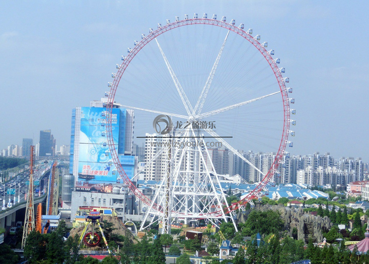 龍之盈摩天輪是每一個(gè)大型游樂(lè)園里必不可少的一款游樂(lè)園設(shè)備,我們所知道的大型游樂(lè)設(shè)備摩天輪,又稱(chēng)觀覽車(chē),是一種大型轉(zhuǎn)輪狀的機(jī)械建筑設(shè)施,上面掛在輪邊緣的是供乘客乘搭的座艙。乘客坐在摩天輪慢慢的往上轉(zhuǎn),可以從高空俯瞰四周景色。最常見(jiàn)到摩天輪存在的場(chǎng)合是游樂(lè)園、主題公園與園游會(huì),也是游樂(lè)場(chǎng)的地標(biāo)性景點(diǎn)。每個(gè)人的青春里都有摩天輪的身影,代表著夢(mèng)幻、意味著放飛、彰顯著個(gè)性,正值年少或者回味當(dāng)年,坐一坐摩天輪定會(huì)讓人思緒飛揚(yáng)。