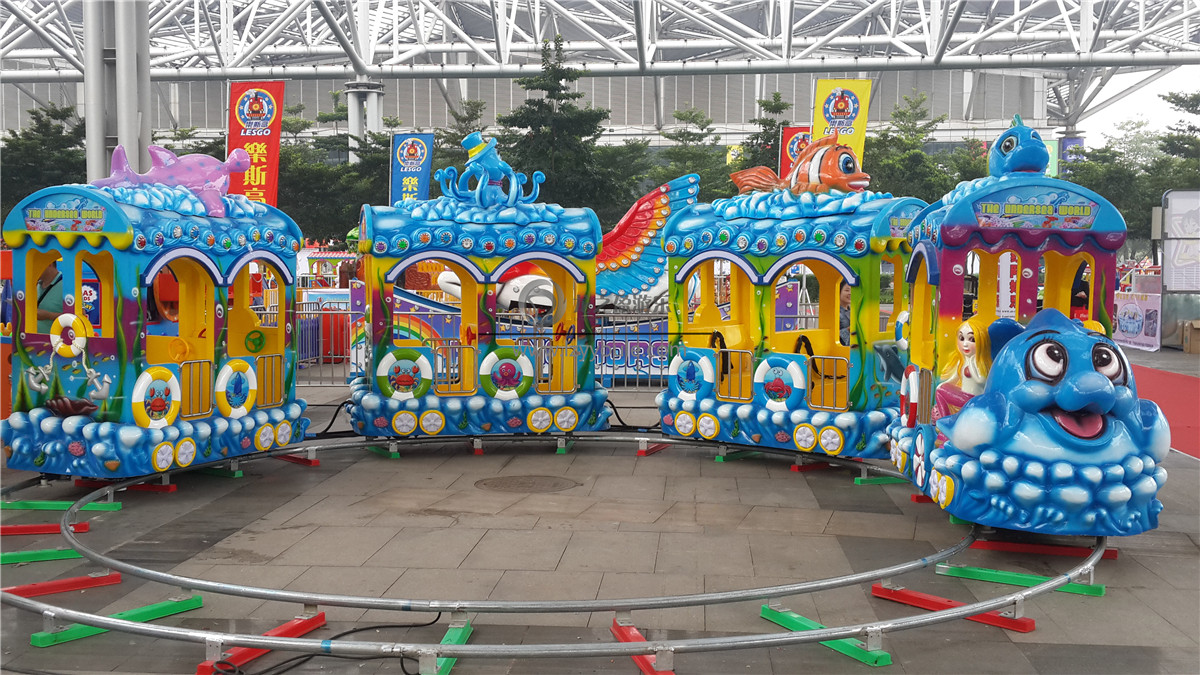 2、小火車是備受2-5歲小朋友喜愛的一款兒童游樂設施,海洋小火車擁有藍白相間的主色,就像藍天白云給人軟綿綿的感覺。滑行過程中車輪與軌道的摩擦,會使坐在車廂里的小朋友上下顛簸,更像是在大海中翻滾前行。車廂數(shù)量一般為4節(jié),可供14人乘坐,車體采用優(yōu)質(zhì)玻璃鋼,耐磨韌性好,龍之盈游樂始終不忘初心,用質(zhì)量說話,用產(chǎn)品樹立品牌。